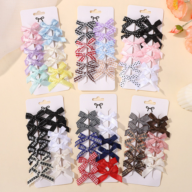12pçs Crianças Doce Cor Sólida Mini Laço Com Grampo De Cabelo Bebê Meninas Estilo Balé Fita Trançada Acessórios Atacado