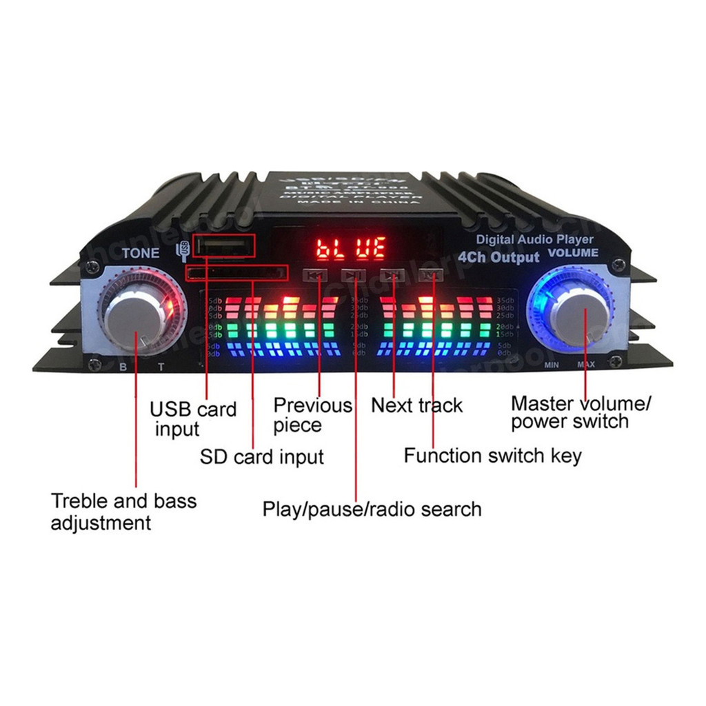 Pronta Entrega! ❤❤BT-998 Característica: amplificador de energia de 4 canais Apoio à entrada USB/SD/AUX A luz LED muda com o volume Axuste de baixo e treble A concha de liga de alumínio pode proteger melhor a máquina Descrição: Tipo de Amplificador de Potência:Amplificador de Potência HIFI Tipo: Amplificador de 4 Canais Modelo: BT 998 Material: liga de alumínio + plástico Potência estimada:45WX4 Potência máxima: 200wx4 Impedança: 4-16 ohm Taxa de distorção: 0,4% Resolução: 47k Proporcão sinal-ruído: -95db Tensão nominal: DC12v Cor: Negro nota: Olá senhor, Quando a tensão de entrada é de 12V, conecte os alto-falantes de 4 ohm e a potência de saída é de 12W. Quando a tensão de entrada é de 12V, conecte alto-falantes de 2 ohm e a potência de saída é de 24W. Quando a tensão de entrada é de 12V, conecte os alto-falantes de 1 ohm e a potência de saída é de 48W. Quando a tensão de entrada é de 16V, conecte alto-falantes de 8 ohm e a potência de saída é de 20W. Quando a tensão de entrada é de 16V, conecte alto-falantes de 4 ohm e a potência de saída é de 40W. Quando a tensão de entrada é de 16V, conecte alto-falantes de 2 ohms e a potência de saída é de 80W (a potência escrita na descrição) Quando a tensão de entrada é de 16V, conecte alto-falantes de 1 ohm, a potência de saída é de 160W e a potência de pico a pico é de 400W (potência máxima/potência máxima) Pacote Incluido: 1 * Amplificador de Potência 1 * Controlo remoto (Sem energia) 1 * Instruções ************************************************************* ❤❤AK-35 Característica: 1.O receptor amplificador estéreo Bluetooth de 1.2 canais é muito adequado para o seu sistema audiovisual doméstico, sistema de áudio ou uso no carro, aproveite o efeito de áudio da amplificação de áudio de alta qualidade. 2. A caixa do amplificador de potência digital AK35 suporta várias fontes de sinal externas, suporta reprodução no formato USB TF RCA AUX, suporta conexão sem fio Bluetooth, suporta rádio FM estéreo e dois canais de saída principais. 3. O dispositivo mixer de amplificação de som está equipado com Bluetooth 5.0, compatível com seus dispositivos favoritos, como smartphones, tablets, iPhones e computadores, e é fácil de emparelhar com o receptor. 4. Com controle de agudos, graves e volume, você pode controlá-lo ajustando o botão no amplificador estéreo, é muito fácil de usar, baixa distorção fornece um som mais claro, forte e poderoso. 5. Suporta fonte de alimentação DC 12V / AC 110V-240V, atualiza alta potência 90W + 90W, pode alternar automaticamente a tensão e vem com um mini controle remoto, o que é conveniente para você controlar a máquina em qualquer ângulo e se livrar de os grilhões dos fios. parâmetro: Tamanho: Aprox: 19x12.5x4.5cm / 7.48x4.92x1.77 polegadas 1. Modelo: AK35 2. Tensão: DC 12V/AC 110V-240V 4. Impedância: 4-16 5. Plugue: plugue americano 6. Bluetooth: suporte 7. Potência RMS: 30W+30W 8. Potência de pico: 90W+90W 9. Impedância de carga: 4-16 10. Canal: 2,0 11. Relação sinal-ruído: 85 decibéis 12. Frequência FM: 87,5-108MHz 13. Taxa de distorção: 0,05% 14. Frequência: 10Hz-20KHz O pacote inclui: 1 x Amplificador De Áudio Estéreo 1 x Controle Remoto 1 x Livro de Instrução Nossa garantia: Se você não estiver satisfeito com sua compra ou tem alguma pergunta sobre seu produto, por favor, contacte-nos através da sala de conversa de , e nossa equipe de serviço cliente ficará feliz em assistir-vos o mais rapidamente possível. Transporte e entrega: Enviado pela FedEx ou designado DHL e entregado em 24 a 72 horas. Você pode ver a data aproximada de entrega no gráfico de camiões abaixo do preço no canto superior direito. A data estimada de entrega é diretamente calculada pelo . O endereço que o usará para enviar é o endereço que você estabeleceu na configuração de sua conta. Certificar que o endereço é correto ou atualizado de acordo com seus requisitos, pois uma vez que o nos atribui o guia de transporte, não podemos modificar como vendedor. Uma vez que seu produto estiver na estrada, você irá receber um email que contém informações de rastreamento para a ordem. Quando o confirmar seu pagamento, você irá nos notificar e nos enviar instruções de envio para enviar seu pacote. Enviamos de segunda a sexta-feira, e se a autenticação for fornecida antes das 14:00, será enviada no mesmo dia; Se a autenticação for fornecida após as 14:00, envie-a no dia seguinte Sua resposta é muito importante para nós porque uma vez que você receba a encomenda, nós agradeceríamos seus comentários e comentários sobre o produto na secção de compra da sua conta de . Para sua segurança, a comunicação será conduzida através do sistema de informação do . Isso permite uma comunicação flexível e contínua. Estamos esperando pela sua compra e podemos ajudá-la. Garantia do vendedor: 30 dias
