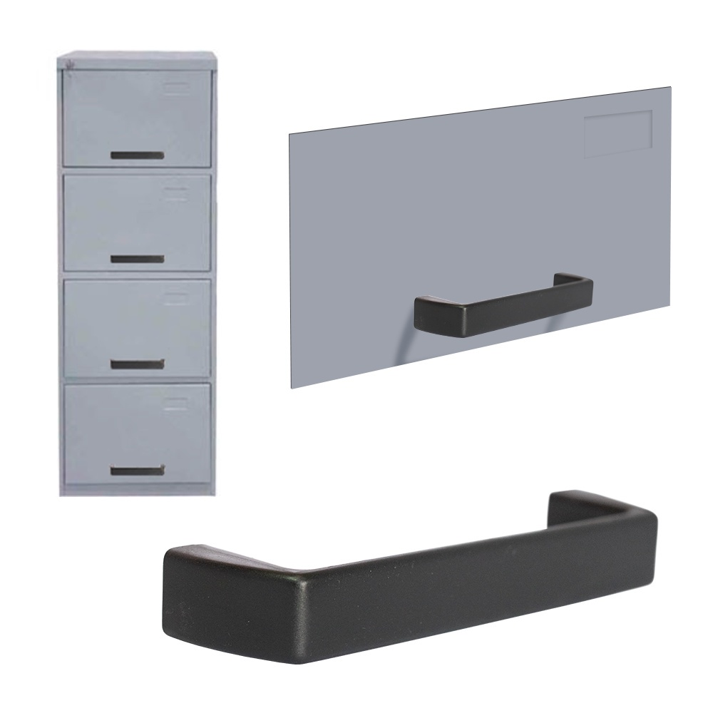 Kit 14 Puxadores Para Gaveta De Arquivo De Aço 9,6cm Ideal para gavetas de arquivo de aço e moveis! Modelo disponível: . Puxador Para Gaveta De Arquivo 9,6cm Descrição: . Modelo Alça . Comprimento: 10,3cm . Largura: 1,5cm . Altura: 2,6cm . 02 Furos . Distancia entre furos: 9,6cm . Material: Plástico ABS Conteúdo da Embalagem: . 14 Puxadores Para Gaveta De Arquivo 9,6cm