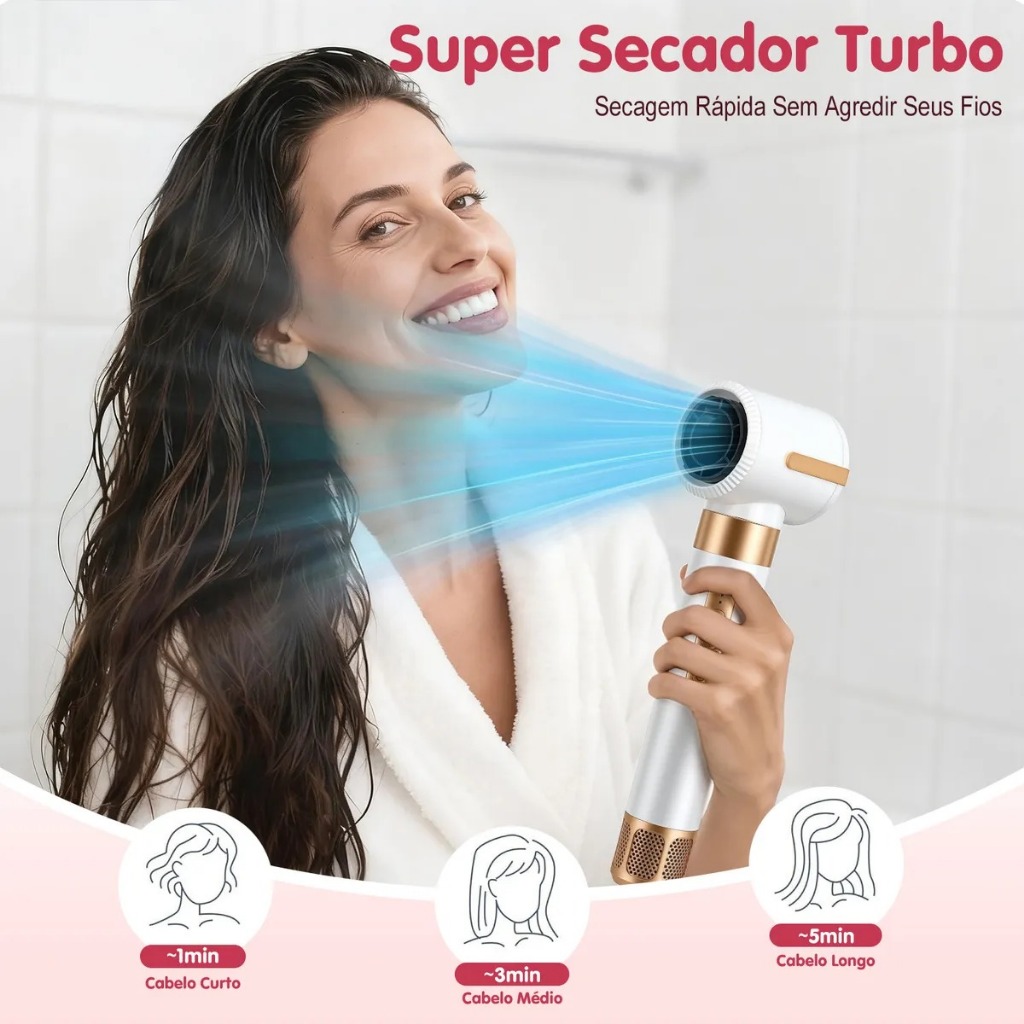 Descrição 1. Sistema 7 em 1 para Styling Completo Inclui seis acessórios profissionais intercambiáveis: dois modeladores de cachos (esquerdo/direito), escova redonda volumizadora, escova reta alisadora com função térmica massageadora, difusor para cachos naturais e bocais concentradores. O conjunto combina as funções de secador e modelador em um único dispositivo, oferece flexibilidade completa para explorar diferentes estilos sem necessidade de múltiplos aparelhos. 2. Motor de Alta Performance com Tecnologia Silenciosa Equipado com motor sem escovas de 130.000 rotações por minuto, gera fluxo de ar concentrado de 20 m/s através da potência 1400W. A engenharia avançada assegura secagem rápida com ruído reduzido, minimizando danos térmicos mesmo em uso prolongado. 3. Controle Preciso de Temperatura e Velocidade Oferece três níveis de temperatura (quente/morno/frio) e três intensidades de fluxo de ar, adaptando-se a todos os tipos de cabelo – desde fios finos até cachos encaracolados. Desenvolvido para cabelos lisos, ondulados, cacheados e crespos, seu fluxo de ar ajustável e acessórios especializados adaptam-se a diferentes densidades e texturas. Esta abordagem de secagem rápida com calor controlado reduz em até 50% a exposição térmica, preservando a integridade da fibra capilar e evitando danos irreversíveis. 4. Dois Modeladores Automáticos Os modeladores de cachos utilizam o efeito Coanda para criar um vórtice de ar que envolve os fios suavemente. O design do duto de ar direciona o fluxo de 20 m/s para enrolamento uniforme, incluindo dois modeladores para direções opostas de cachos. 5. Tecnologia de Desembaraço e Nutrição Capilar O design inovador do pente matriz distribui a tensão mecanicamente, desfazendo nós da raiz às pontas sem tracionar ou quebrar os fios. A escova alisadora emite calor terapêutico que estimula a circulação sanguínea do couro cabeludo enquanto sela a umidade natural do cabelo. 6. Tratamento Ionizador Antifrizz e Intensificador de Brilho Emite partículas de íons negativos que neutralizam a eletricidade estática do cabelo, fechando as cutículas abertas pela umidade típica do clima brasileiro. Resulta em fios 60% mais lisos e com brilho reflexivo, além de reduzir em 40% o tempo de secagem. Especificações Técnicas: • Tensão Nominal: 110V • Frequência Nominal: 50-60 Hz • Potência: 1400W • Velocidade do Ar: 20 m/s • Pressão do Ar: 108 g • Nível de Ruído: 84 dB • Elemento de Aquecimento: Fio de resistência • Temperaturas: - Posição 1: Ambiente (sem aquecimento) - Posição 2: 70°C - Posição 3: 110°C • Níveis de Velocidade: 3 • Comprimento do Cabo: 2 m Garantia do vendedor: 30 dias