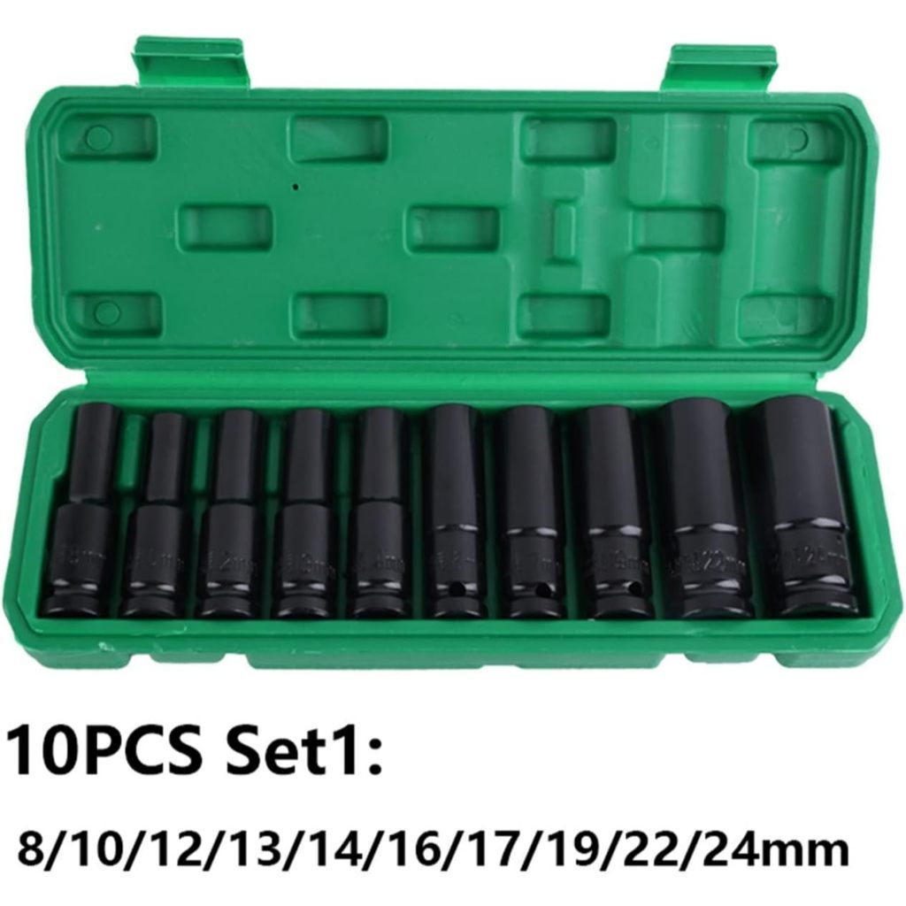 Jogo Soquete Longo Sextavado Impacto 1/2 8 A 32 Mm 15pcs Conjunto de soquetes de impacto de 1/2" com 15 soquetes de impacto profundo, embalados em uma caixa personalizada com indexação de tamanho para fácil armazenamento e portabilidade. O conjunto de soquetes profundos inclui: 8 mm, 10 mm, 12 mm, 13 mm, 14 mm, 15 mm, 16 mm, 17 mm, 19 mm, 21 mm, 22 mm, 24 mm, 27 mm, 30 mm, 32 mm. -Aço de liga de alta qualidade O conjunto de soquetes de impacto de nível industrial é feito de aço cromo vanádio de alta qualidade. Após tratamento térmico e forjamento, apresenta maior dureza e tenacidade. Construção robusta adequada para chaves de impacto e outras ferramentas de alto torque.Forjado em aço cromo-vanádio de alta qualidade, ele suporta torque extremo (até 2.000 libras-pé) e resiste a rachaduras, garantindo longevidade para missões automotivas e industriais pesadas. -Excelente desempenho Seja usando uma chave de impacto ou manualmente, este soquete de cromo vanádio premium oferece excelente desempenho. O conjunto de soquetes de impacto apresenta um design de alto torque de 6 pontos que faz contato e agarra os lados mais fortes e planos da cabeça de uma porca ou parafuso, em vez dos cantos mais fracos. -Compatibilidade dupla para ferramentas pneumáticas e sem fio Perfeitamente combinado com chaves de impacto pneumáticas (pistolas de pressão) e parafusadeiras de impacto sem fio de íons de lítio, ele oferece versatilidade para oficinas, canteiros de obras ou projetos "faça você mesmo". -Design hexagonal estendido de 1/2" A cabeça de soquete profunda de 6 pontos proporciona máxima aderência em fixadores, enquanto o comprimento estendido alcança parafusos rebaixados em espaços apertados, como cubos de roda ou compartimentos do motor. -Revestimento de óxido preto resistente à corrosão Ele resiste à ferrugem, ao desgaste e aos danos químicos e continua funcionando perfeitamente mesmo em ambientes adversos, como condições marítimas ou off-road. Fácil de usar: As marcações gravadas a laser em cada soquete neste kit de ferramentas de soquete facilitam a identificação do tamanho, tornando-o perfeito para uso em casa ou no local de trabalho.