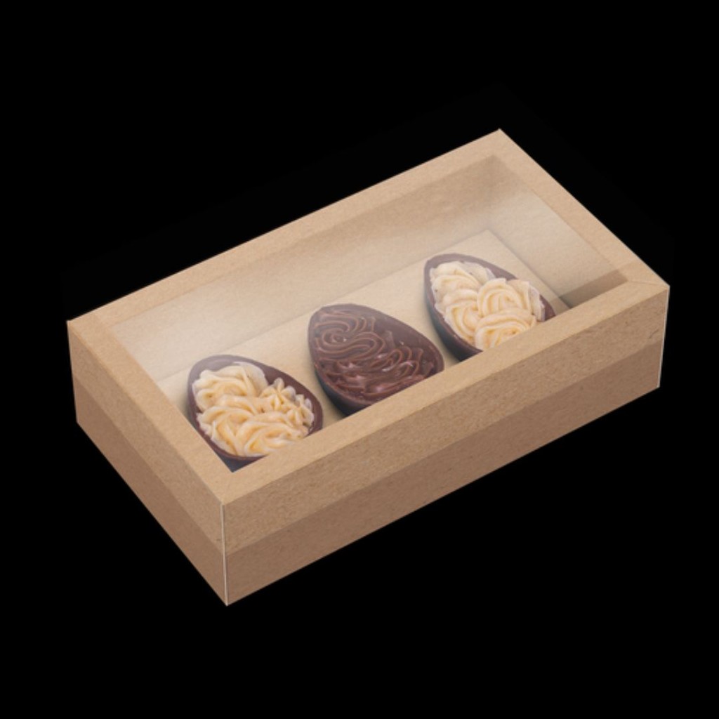 CAIXAS DEGUSTAÇÃO COM MOLDURA 3X50G KRAFT - PÁSCOA ESSENCIAL SÃO EMBALAGENS ELEGANTES E PRÁTICAS, IDEAL PARA APRESENTAR TRÊS PORÇÕES DE 50G DE OVOS DE PÁSCOA. COM DESIGN EM MATERIAL KRAFT, A MOLDURA ADICIONA UM TOQUE RÚSTICO E CHARMOSO, PERFEITO PARA A PÁSCOA. FEITAS EM MATERIAL RESISTENTE, GARANTEM A PROTEÇÃO DOS DOCES DURANTE O TRANSPORTE. PERFEITAS PARA COMERCIALIZAÇÃO OU PARA PRESENTEAR DE FORMA DELICADA E TEMÁTICA, ESSA EMBALAGEM TRAZ SIMPLICIDADE E SOFISTICAÇÃO NESTA DATA FESTIVA. MEDIDAS: 18X10X8 CM ATENÇÃO: - NÃO ACOMPANHA CHOCOLATES