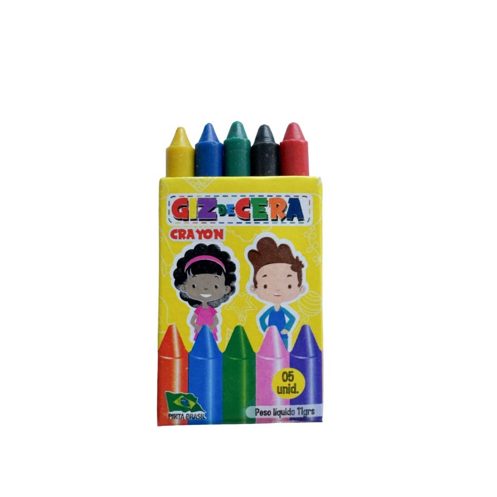 15 Caixas de Mini Giz de Cera 5 Cores 5cm Tamanho da Caixa: 5cm x 4cm É amplamente utilizado para realização de ilustrações, esboços e preenchimentos de grandes áreas em desenhos livres ou tarefas escolares. Por ser uma figura presente dentro das salas de aula, seu material é atóxico e totalmente seguro para as crianças! O ato de controlar um lápis ou o giz de cera num movimento de pinça, desenvolve a coordenação motora. Isso acontece a partir dos 3 anos, quando a criança sai do desenho de garatujas para desenhos com mais sentido. **ATENÇÃO, SÃO MINI GIZ, MEDEM 5CM**