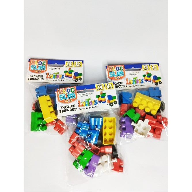 *FOTOS ILUSTRATIVAS AS CORES PODEM ALTERAR DEVIDO AO MONITOR OU TELA DE CELULAR.* *ATENÇAO, NAO PERSONALIZAMOS E NEM FABRICAMOS NENHUM PRODUTO. TODOS VÃO NOS MODELOS DAS FOTOS.* Os blocos de montar além de estimular a criatividade, auxiliam no desenvolvimento da concentração, da coordenação motora e do raciocínio lógico, fazendo com que as crianças busquem soluções de forma independente e sintam o prazer de ver o seu pequeno projeto concluído, contando com a possibilidade de desfazer e começar tudo de novo. Com modelos de diversos formatos, tamanhos e cores, os blocos de montar são indicados para diferentes faixas etárias e podem acompanhar o seu pequenino por todo o seu crescimento. Crianças menores, de até 3 anos, podem começar com peças maiores e menos complexas de serem encaixadas. Conforme o seu crescimento, os brinquedos podem ser trocados por peças menores e com mais unidades, fazendo com o que o nível de complexidade aumente, gerando novos desafios para a criança. ITEM ANUNCIADO 15 PACOTE COM 16 PEÇAS Validade: Indeterminada Indicação: Maiores de 2 anos Cores: Sortidas Composição: Plástico. Qualquer dúvida, estamos à disposição. Bolinha Mágica.