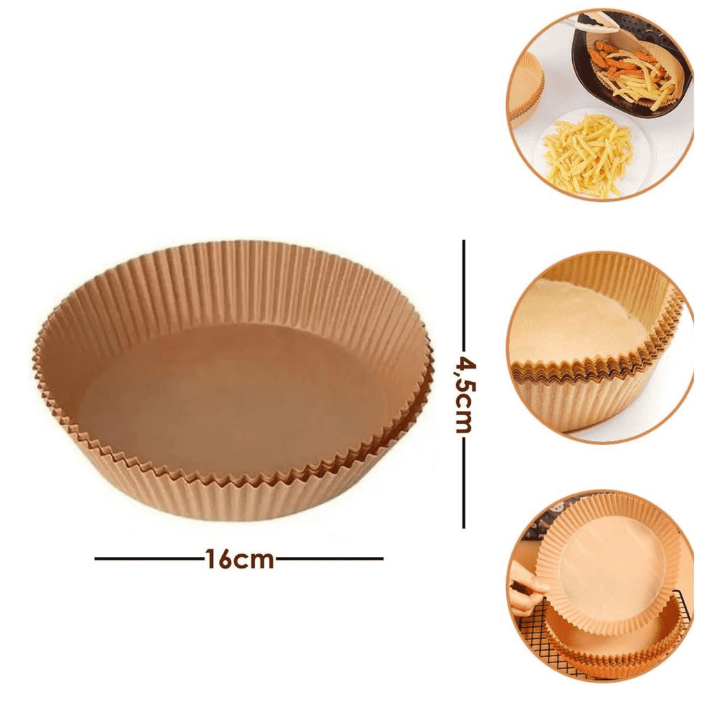 Kit c/ 150 Unidades Forma Papel Descartável Antiaderente para Airfrye Kit 150 - Forma redondo Para AirFryer Forro Protetor Para Microondas Fritadeira Elétrica Air Frier BioDegradável DescartávelKit Com 150 - Unidades de Cesto Protetor Descartável Para AirFryer, Microondas, Forno Elétrico - Chegaram os Protetores de Papel Reforçado Para Sua AirFyer. Vantagens: Saudável e Não Tóxico, para o ser humano e não agride o meio ambiente. Resistente ao calor. A prova de Óleo e de Gordura ? Antiaderente. A Prova D ?água, satisfaça todos os seus desejos culinários. Mantenha seu recipiente limpo. Dimensões E Material: Material: Papel Biodegradável Largura da Base: 16Cm x 16Cm Altura: 4,5Cm -Suporta até 220c de calor;