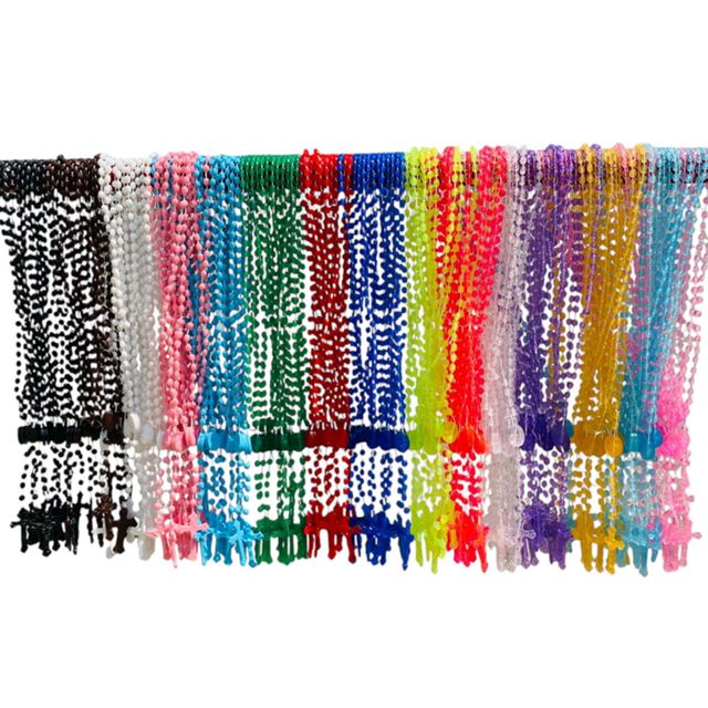 150 Unidades - Terço Católico de plástico de pescoço com abertura na medalha 33 cm