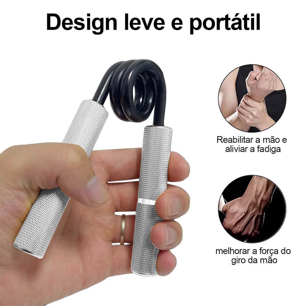 Lista de produtos da lista de produtos: 1x alça de serviço pesado 150LB (68Kg) Material da liga de alumínio e ferro Cor: Prata Tamanho: 13cm x 9,5cm Força: Cerca de 68kg ±5 (150Lbs) Nível intermediário Força da mão para melhorar o antebraço e a força da mão A Resistência e Energia dos Pulsos, Palmas, Dedos E Auxilia na Melhora da Velocidade, Força E Energia dos Pulsos, Palmas, Dedos E Antebraços. Design ergonômico, adequado para homens e mulheres. Indicado Para Escaladores, Artistas Marciais, Atletas Ou Qualquer Um Que Queira Melhorar Sua Aderência, Fortalecer Suas Mãos E Força do Pulso. É Ideal Para Quem Tem Já Tocado Com Algumas Forças Treinamento Grip Inferior, Ou Tenha Carregado Alguns Exercícios Físicos, Mas Só Começou o Treinamento E Quer Mais Melhorar. Também pode ser usado como um exercício de aquecimento que tem alcançado um nível mais alto.