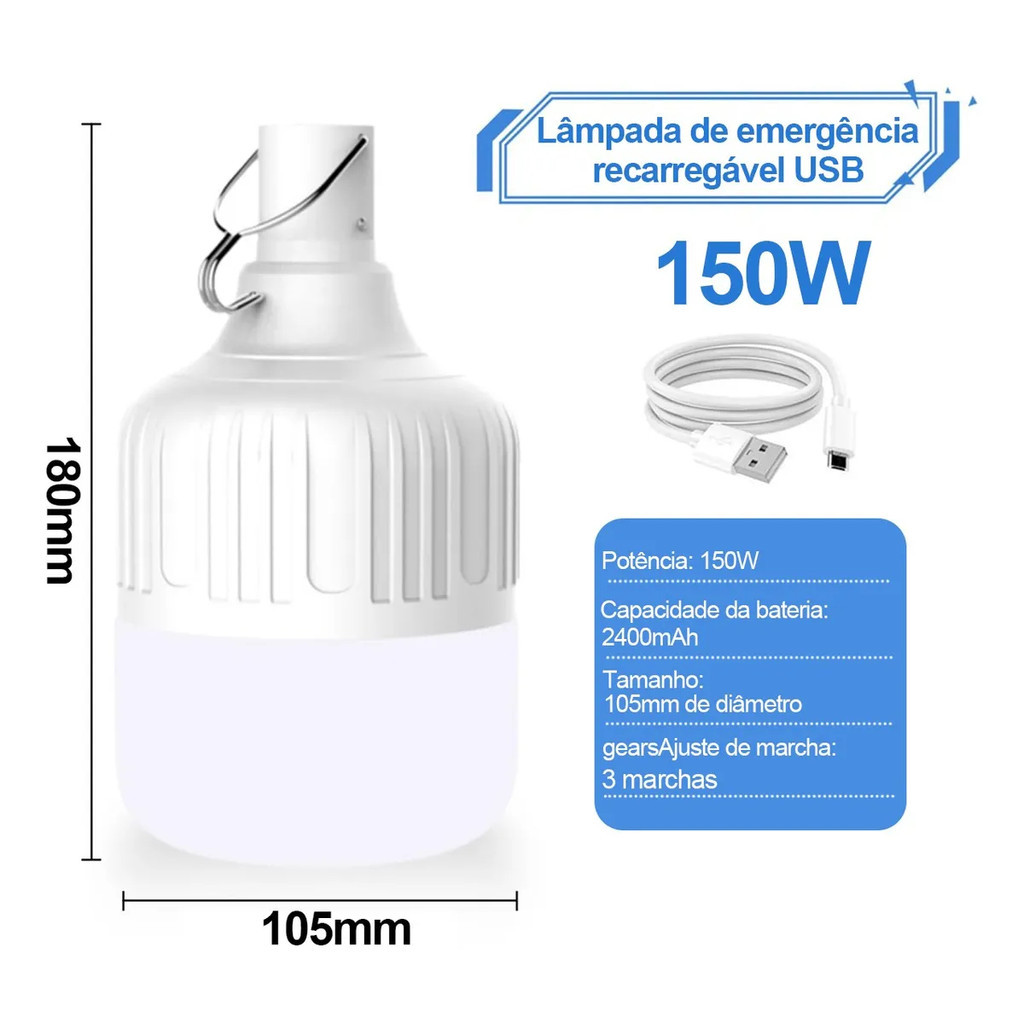 150w Lampião Camping Led Recarregável Acampamen Barraca