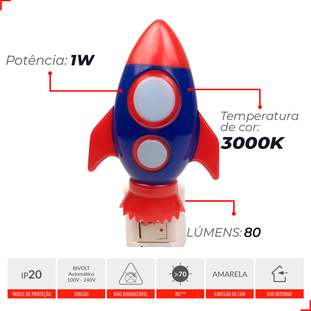 151030578 Mini Abajur Foguete Luz Noturna 1W 3000K Bivolt Avant