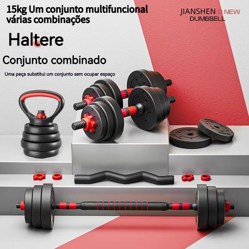 15kg Kit Halteres Barra Kettlebell 6 em 1 Peso Musculação treino em casa