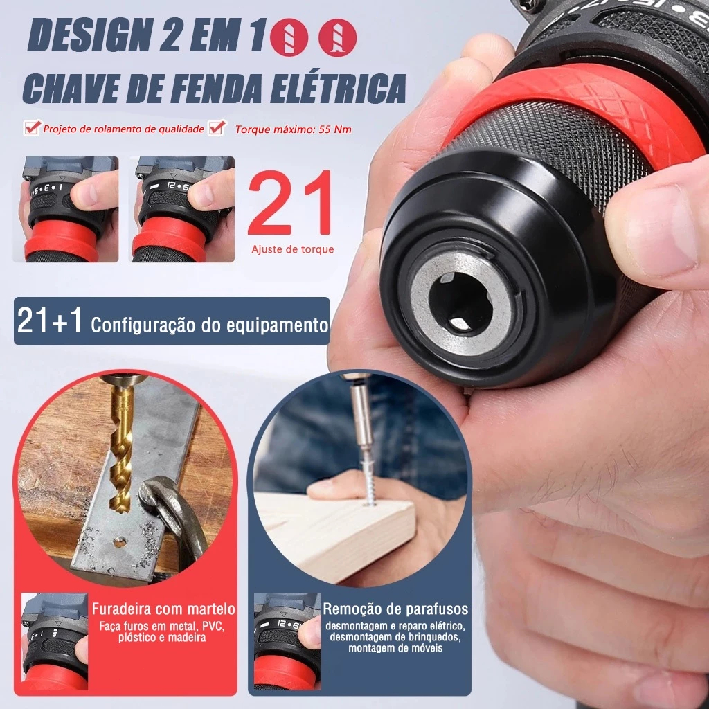 | 16.8V/21V Parafusadeira 2 Baterias Furadeira Ferramentas sem escova este produto | R$ 129,90 | 74% | 4.9/5 | 188 |