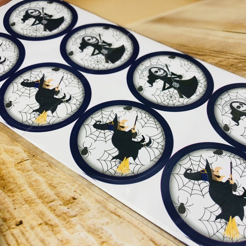 16 ADESIVOS REDONDOS HALLOWEEN (LATINHA/GARRAFINHA) 62.5