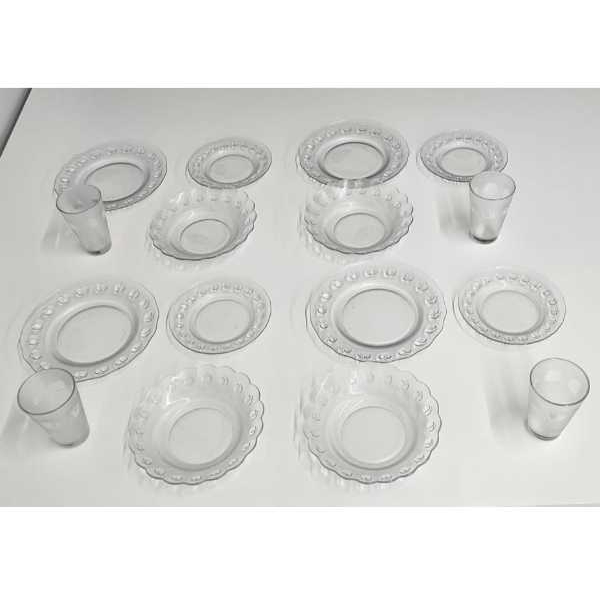 16 Peças Vidro Premium Jantar - Importado Do Egito - Design Maça Luxo - Prato Fundo, Raso, Sobremesa e Copo