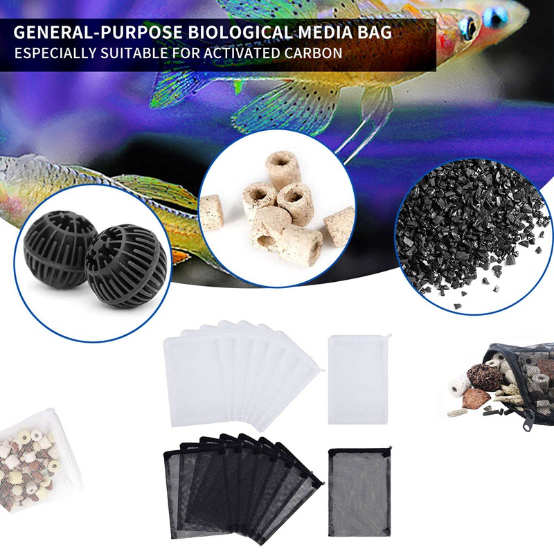 16 Sacos De Filtro De Mídia De Malha De Aquário Dos Pces , Náilon Com Zíper (Para Carbono De Partículas) , Bio Bolas