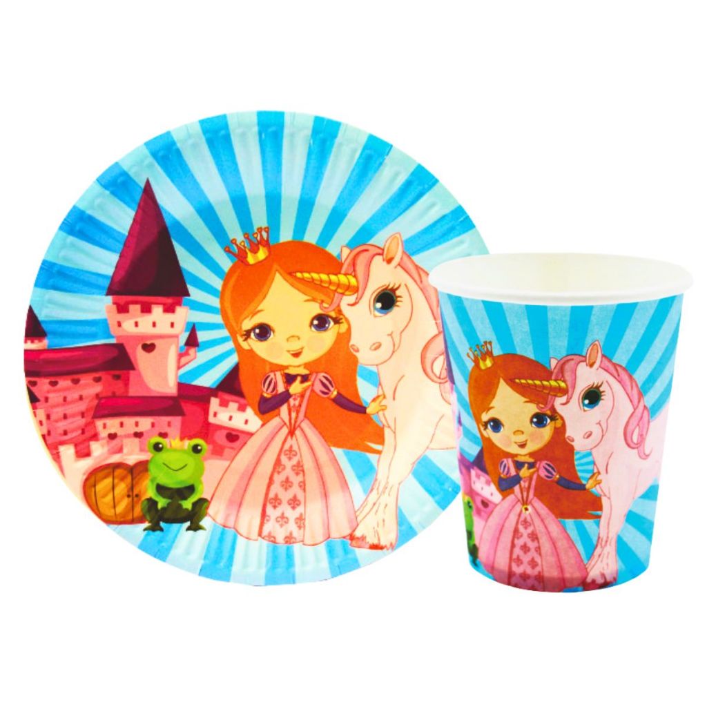 16pçs: Pratos + Copos Descartáveis de Papel Festa Aniversário Bombeiro Princesa Sereia Carros
