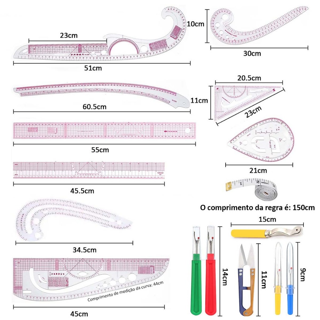 17 Peças Kit Réguas Para Modelagem Flexível Patchwork,costura,corte