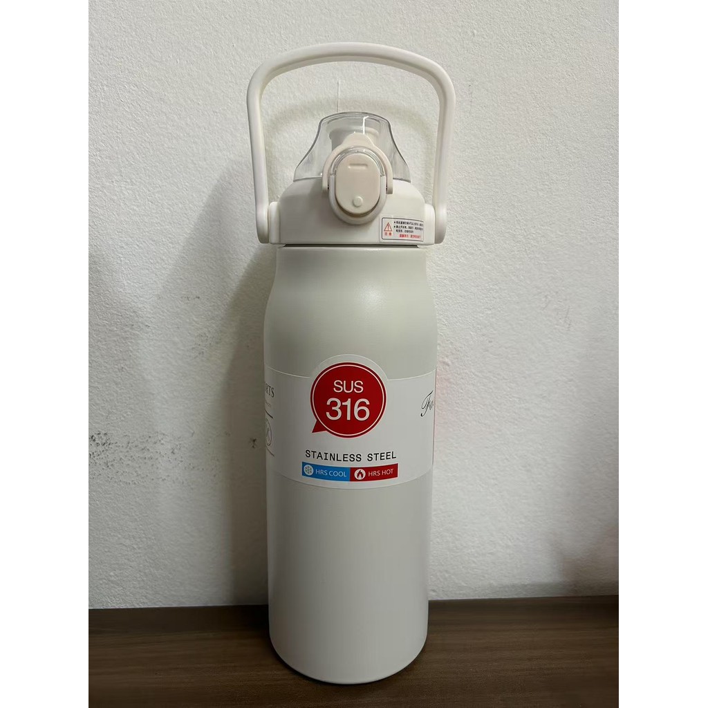1700ML Garrafa Térmica Grande em Aço Inox Canudo Alça e Trava Parede Dupla 1,2L 3D Adesivos