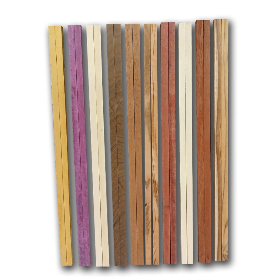 *** LEIA TODO O ANÚNCIO ANTES DA COMPRA *** MADEIRAS DE LEI de MÉDIA e ALTA DENSIDADE Ideal para uso em Marchetaria, Cutelaria, Luteria e Artesanato de alto nível. São 18 peças No kit vai 2 peças de cada tipo de madeira Cada peça tem as seguintes medidas: 40 cm Comprimento 1 cm Largura 1 cm Espessura Espécies: 1 - ROXINHO 2 - MARFIM 3 - Ipê 4 - Mogno 5 - Muiracatiara 6 - Muirapiranga 7 - Caixeta 8 - Canjerana 9 - TECA 10 - Tatajuba (CORTESIA) ATENÇÃO: 1..... Valor referente a UM KIT. 2..... São 2 peças de cada espécie. 3..... O tom das cores podem variar. 4..... As peças de Tatajuba são CORTESIA, caso não tenha disponibilidade, outra madeira será enviada no lugar como cortesia. **Como recebemos as peças já cortadas nas medidas anunciadas, pode ocorrer uma pequena variação de 1 mm a 2 mm tanto para mais como para menos. Caso isso ocorra com a sua peça contamos com a sua compreensão. *************************************************************************** Temos mais de 40 espécies de madeiras Nobres do Brasil.