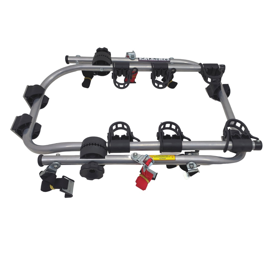 CARACTERÍSTICAS:- Uso em carros sedan e hatch. Não serve em caminhonetes e não server em ecoesporte (Temos modelos para carros com step na tampa do porta-malas)- Borrachas e alças protetoras para fixar as bicicletas com segurança e não danificar sua bike.- Feito em Aço.- Capacidade de transporte: aproximadamente 55 Kg.- Capacidade de carga: 3 bicicletas.- 6 fitas para instalação no porta malas com pontas emborrachadas para não danificar seu veículo.- Sistema de catraca de fácil montagem e desmontagem.- Borrachas especiais com maior área de contato para proteção do seu veículo.Peso: 4 kg