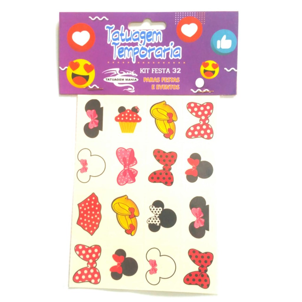 Kit com 192 tatuagens infantis temas meninas e meninos,são 6 cartelas com 32 tatuagens cada. Pode escolher entre temas para meninas,meninos ou variados,enviando uma mensagem pelo chat da shopee. Ideal para presente,festas e eventos Tamanho:3cmx4cm Produto desenvolvido para alegrar,presentear e distrair.Segundo o fabricante as tatuagens infantis seguem todas as normas de segurança e atoxidade,contando com testes de atoxidade,irritabilidade dérmica e outros. Composição:papel gomado,tinta atoxica para impressão e bopp. Aplicação: 1-Retire a proteção plástica 2-Aplique sobre a pele limpa e seca 3-Umedeça totalmente o verso 4-Presssione levemente os dedos sobre toda a extensão da tatuagem 5-Não deixe partes secas(embranquecidas) 6-Retire vagarosamente puxando para trás Para retirar apenas usar água e sabão ou álcool. temos a pronta entrega. Envio rápido