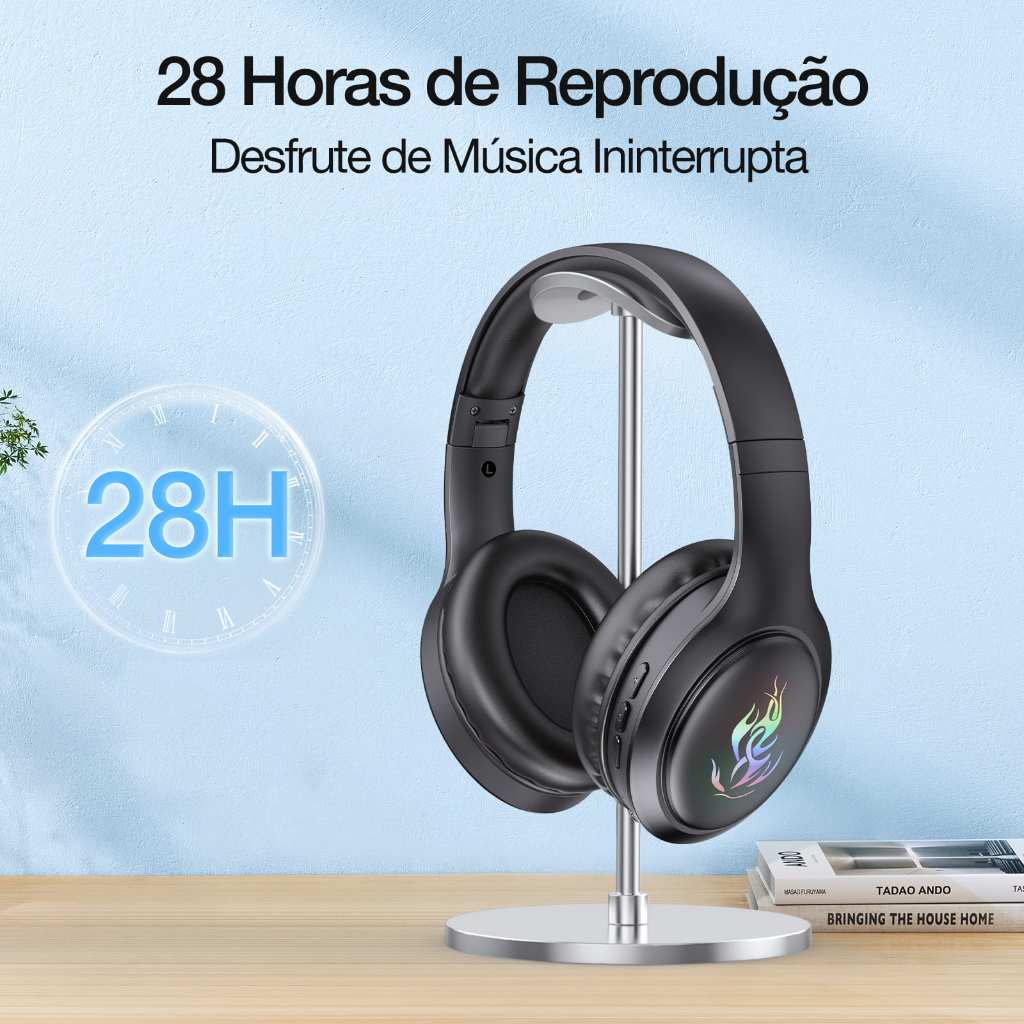 1HORA AUT202 Fone de ouvido Bluetooth 5.1 Sem Fio Headset Design Dobrável Com Microfone