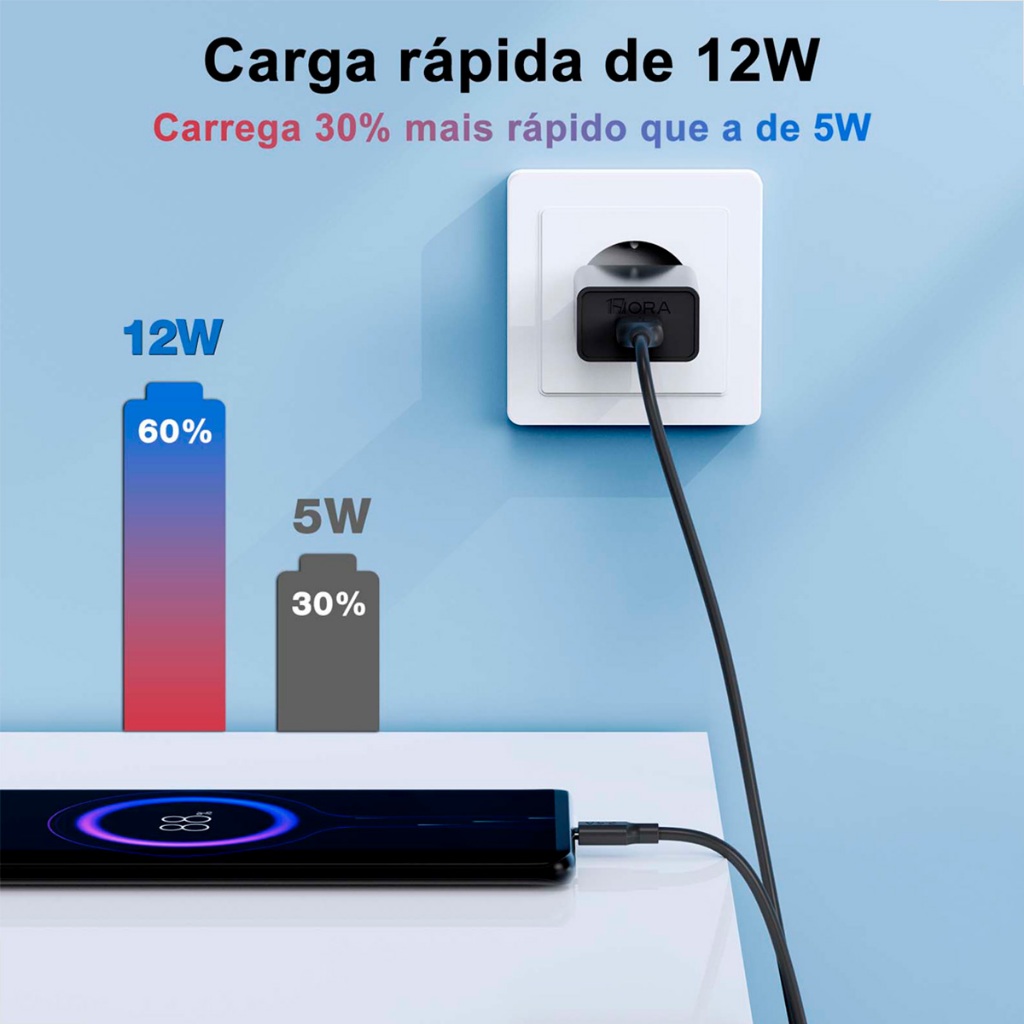 1HORA Carregador Rápido Parede Turbo + Cabo Usb Tipo A/c Preto