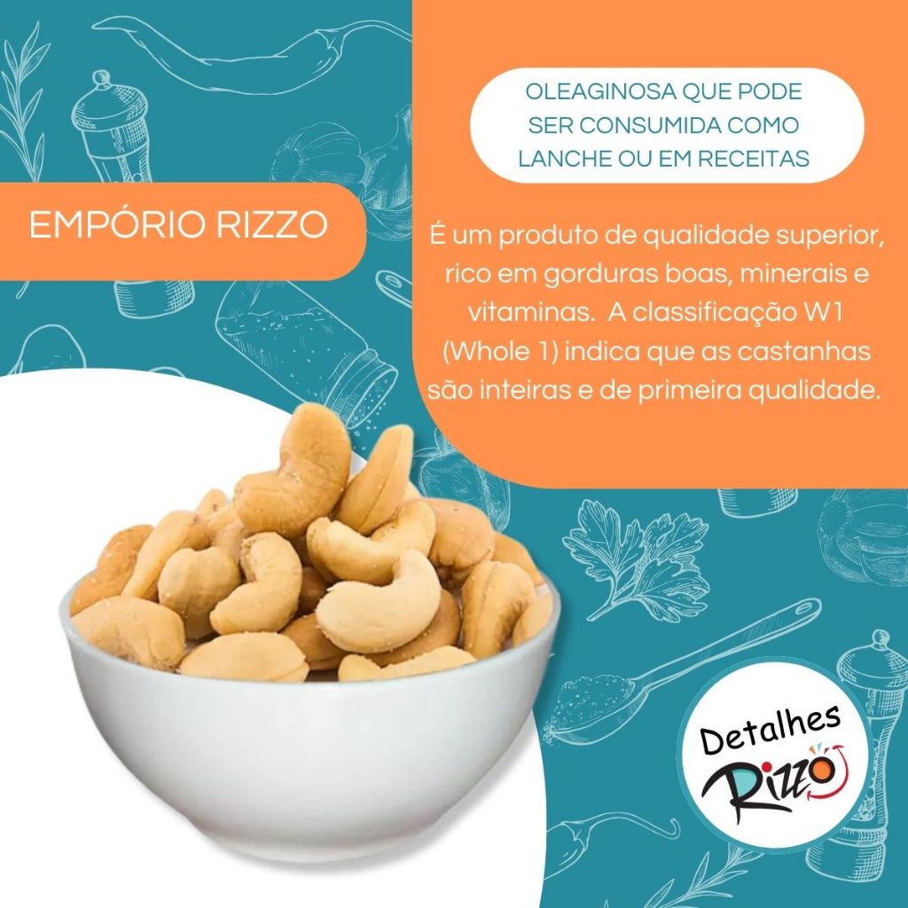 | 1kg Castanha De Caju Torrada W1 com Sal Torrada Inteira Rizzo Confe... este produto | R$ 117,90 | — | 5.0/5 | — |