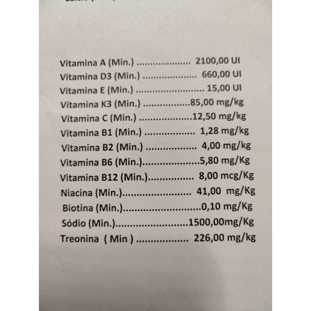*** POSTAGEM RÁPIDA *** Pacote de 1 Kg ATENÇÃO: ESTE PRODUTO JÁ VEM DE FÁBRICA COM AROMA DE FRUTAS. Imagem Ilustrativa. O Extrusado Super Premium têm formato e aroma atrativos, foi desenvolvido com ingredientes especiais para atender com altíssima qualidade as necessidades nutricionais de Coleiros, Pixoxós, Caboclinhos, Bigodinhos, Canários, Patativas, Pintassilgos e outros do mesmo porte. Contém vitaminas e minerais de alto padrão, além de Prebiótico que promove o crescimento seletivo de bactérias benéficas presentes nos intestinos, melhorando o aproveitamento dos nutrientes. Contribui com a higiene e facilita o manejo, pois não há necessidade da rotina diária de limpeza dos comedouros, como ocorre com sementes e alimentos frescos. Sendo assim, o alimento pode ser fornecido para vários dias. Nos períodos de reprodução e muda de penas. Níveis de Garantia Umidade (máx.) 100 g/kg (10 %) Proteína bruta (mín.) 158 g/kg (15,8 %) Extrato etéreo (mín.) 50 g/kg (5 %) Matéria fibrosa (máx.) 30 g/kg (3 %) Matéria mineral (máx.) 50 g/kg (5 %) Cálcio (máx.) 8.000 mg/kg (0,8 %) Cálcio (mín.) 6.000 mg/kg (0,6 %) Fósforo (mín.) 3.000 mg/kg (0,3 %) Mananoligossacarídeo (mín.) 240 mg/kg (0,024 %) *** VISITE NOSSA LOJA ***