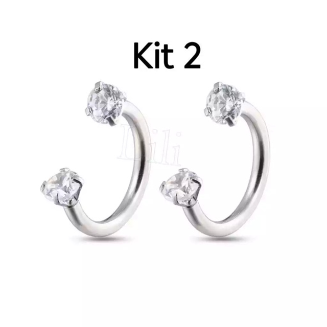 1ou kit 2 Piercing para Nariz/lábio/ Cartilagem helix brinco com 2 Zircônia