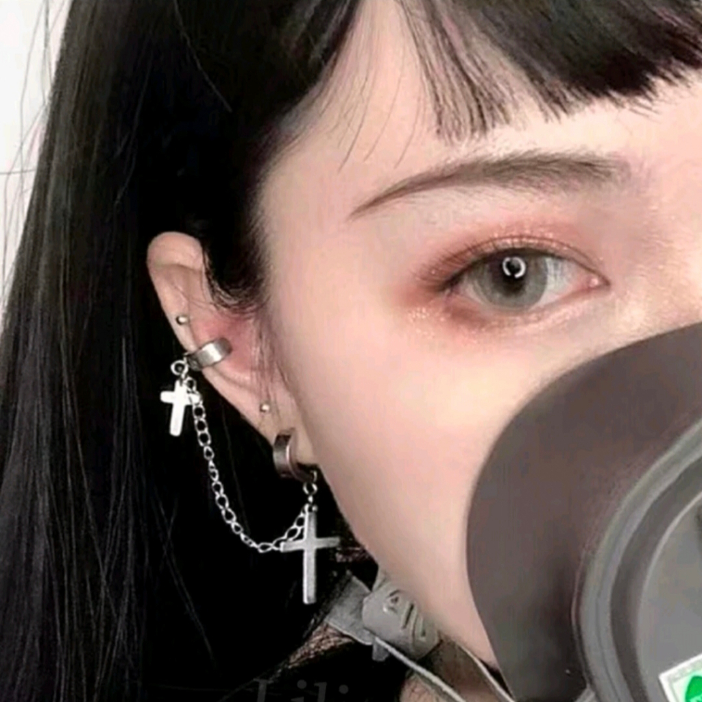1Pç Brinco De Pressão de Argola Com Pingente de Cruz e Correte Aço inox unissex