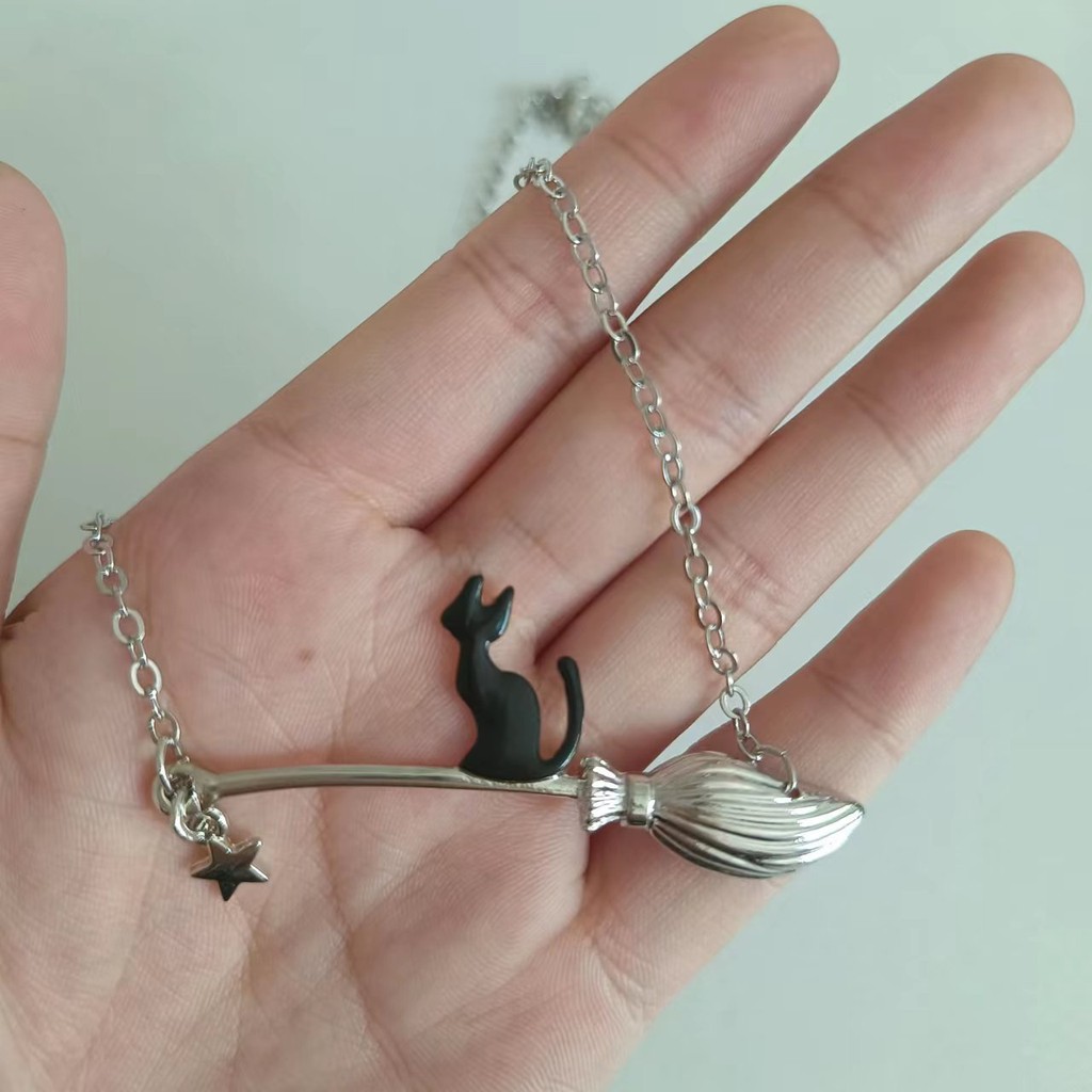 1Pc Novo Feliz Dia Das Bruxas Vassoura Unny Gato Preto Colar Presente Crianças Colar bonito gato Presentes para hallowee