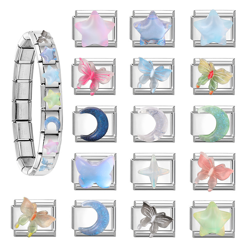 1PC Purple Flower Star Heart Italian Charm Link Fit 9mm Bracelets Stainless Steel DIY Making Women Girls Jewelry Gifts
