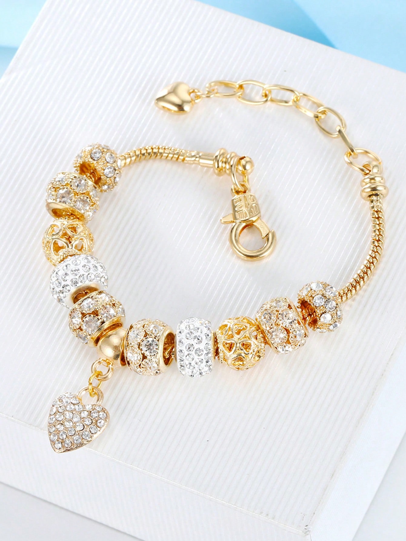 1pc strass Redondo Bola & Coração Amoroso Bracelete De Latão Da Moda Para Meninas Decoração Diária valentine .