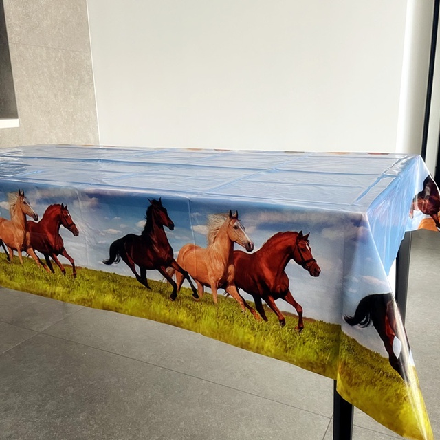 1pç Toalha De Mesa 130x220cm Com Tema Cavalo Corrida Selvagem Descartável Para Decoração De Festa
