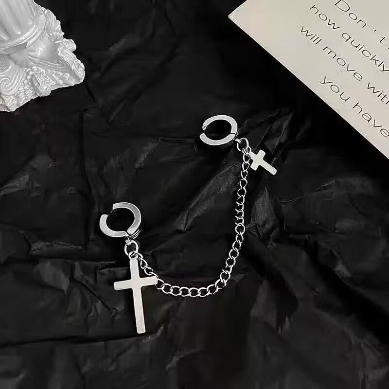 1Pçs Brinco De Argola com Cruz e Correte varias modelo Aço inox Masculino Feminino /moda