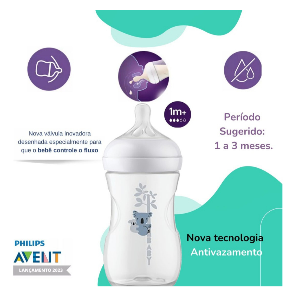 1un Mamadeira Avent Pétala 260ml transparente - Coala