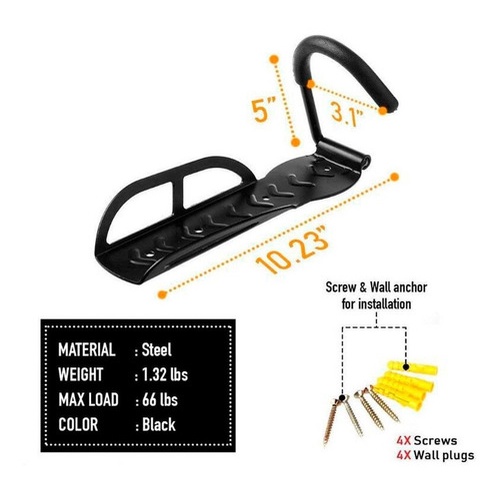 1x Gancho De Parede Bike P/ Pendurar Suporte De Bike C/ Apoio