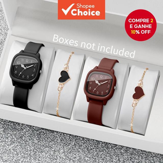 Catalogado na subcategoria Relógios Femininos (de Relógios), 2/4PCS Relógio de Pulso Feminino Quadrado Moda Casual com Pulseira de Silicone Conjunto de Relógio com Pulseira de está à venda na Shopee Brasil por R$ 18,65 (77% de desconto sobre o preço original de R$ 81,09). Nota 4.8 de 5 na Shopee e 182 unidades vendidas, este produto se destaca pelo excelente custo-benefício.