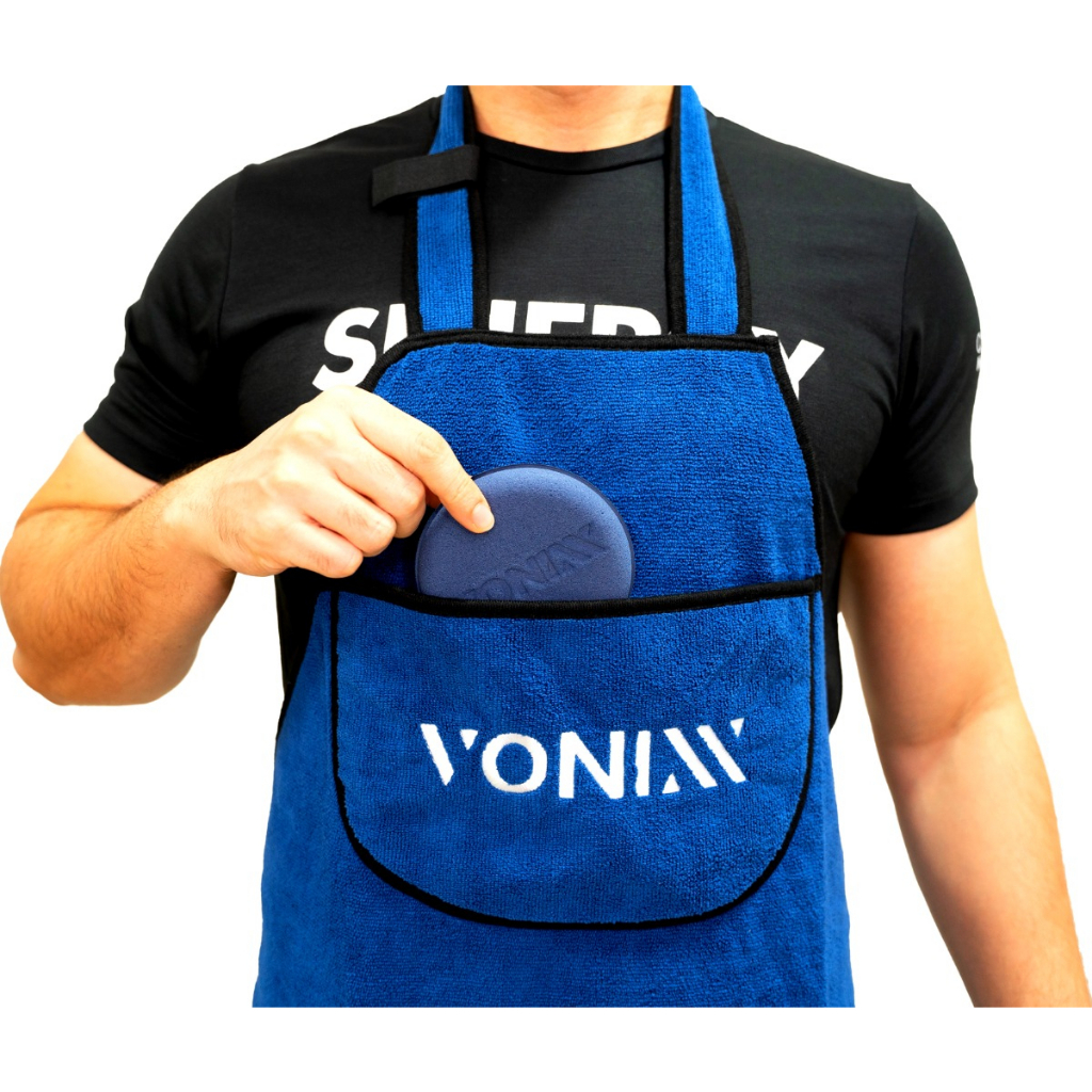 2 - AVENTAL DE MICROFIBRA VONIXX CARACTERÍSTICAS: - IDEAL PARA O USO DURANTE O DETALHAMENTO DE VEÍCULOS. - SUPERFÍCIE MACIA: NÃO ARRANHA A PINTURA DO VEÍCULO AO CONTATO. - A PROVA D'ÁGUA. - BOLSO FRONTAL - BOLSO LATERAL - SUPORTE PARA CABOS - TAMANHO 68X75 - 80% POLIÉSTER / 20% POLIAMIDA DESCRIÇÃO: Feito com microfibra premium, este avental é extremamente durável e tem uma longa vida útil. Além disso, é ultra-absorvente, garantindo que qualquer líquido ou sujeira que entre em contato com ele seja imediatamente absorvido, minimizando a possibilidade de manchas em suas roupas.