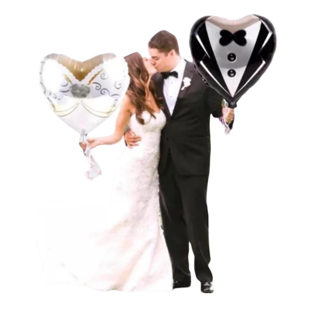 2 balão NOIVO E NOIVA coração metalizado 45 cm casamento balão formato coração com estampa de vestido e terno noivo