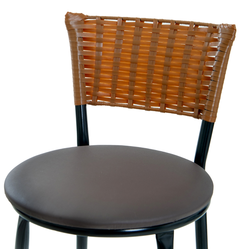 **LEIA COM ATENÇÃO** POR GENTILEZA: • ADQUIRIR APENAS 1 KIT POR COMPRA PARA PODER SER ENVIADO; • PARA MAIS DE 1 KIT FAZER EM COMPRAS SEPARADAS; • CASO ADQUIRA QUANTIDADE MAIOR QUE A PERMITIDA A COMPRA PODERÁ SER CANCELADA DEVIDO ÀS RESTRIÇÕES DE DIMENSÃO. FICHA TÉCNICA Material da estrutura: Aço Tubular 7/8” Pintura da estrutura: Tinta Epoxi-pó Material do assento: Napa Material do encosto: JUNCO IMBUIA Altura total: 93 cm Altura até assento: 70 cm Dimensão dos pés: 37x29 cm Diâmetro do assento: 33 cm Encosto: 25 cm x 33 cm Cor estrutura: Preto
