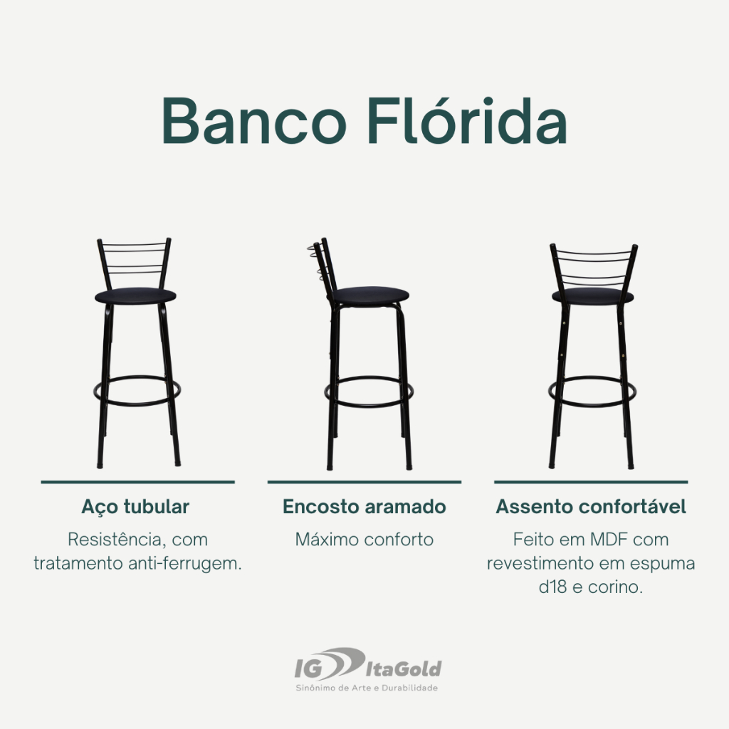 Apresentamos: Banqueta Preta Flórida Itagold - Conforto e Estilo em Dobro! Procurando por móveis que unam elegância e funcionalidade? As Banquetas Flórida da Itagold são a resposta! Seu ambiente vai ganhar um toque de sofisticação enquanto você desfruta de máximo conforto. Problema Comum: Banquetas sem Estilo e Durabilidade. Você já se deparou com banquetas desconfortáveis ou que não duram muito tempo? Sabemos como isso pode ser frustrante. Temos A Solução Perfeita: As Banquetas Flórida da Itagold. Com estrutura em aço carbono tubular, tratamento antiferrugem e assento em MDF, corino e espuma, nossas banquetas oferecem a combinação ideal de durabilidade e conforto. Diga adeus às preocupações com móveis de baixa qualidade! Garanta já sua Banquetas Flórida por um preço incrível! Aproveite a oferta exclusiva da Utilar Shop e transforme seu ambiente com estilo e qualidade. Benefícios Incomparáveis: Resistência para até 150kg - Projetadas para Durar. Altura ideal para bancadas de 95cm a 1,09m. Design elegante com pintura epóxi. Conforto extra com encosto BTC. Especificações Técnicas: Altura do Assento até o Chão: 70cm. Altura do Encosto até o Chão: 90cm. Diâmetro do Assento: 33,5cm. Estamos tão confiantes na qualidade de nossas banquetas que oferecemos uma garantia de 3 meses contra defeitos de fabricação. Sua satisfação e confiança são nossa prioridade. Aproveite Agora! Transforme Seu Espaço com Estilo e Qualidade! Não perca tempo! Clique em "Comprar Agora" e leve para casa as Banquetas Flórida da Itagold. Seu ambiente agradece! Agradecemos pela visita à Utilar Shop. Conte conosco para oferecer o melhor em móveis para sua casa! Produto Patenteado Registrado