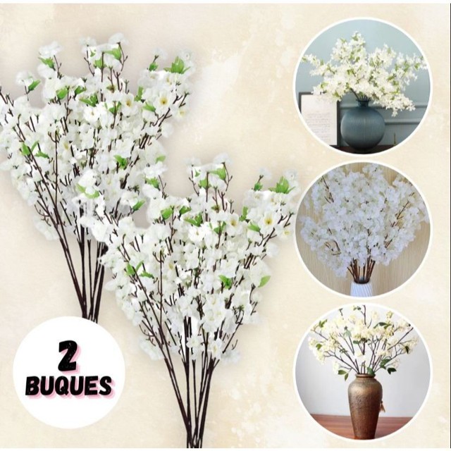 | 2 Buque Flor Cerejeira BRANCO Artificial 6 Galhos Grande Decoração ... este produto | R$ 28,56 | — | 4.7/5 | 52 |