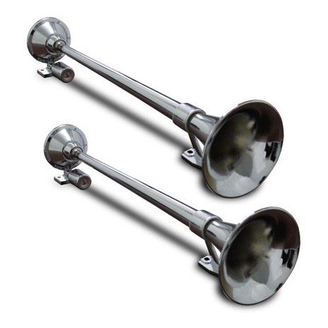 2 BUZINA CROMADA MARÍTIMA CAMINHÃO ELETROPNEUMÁTICA 1 CORNETA METAL 74 CM 74CM - Bivolt