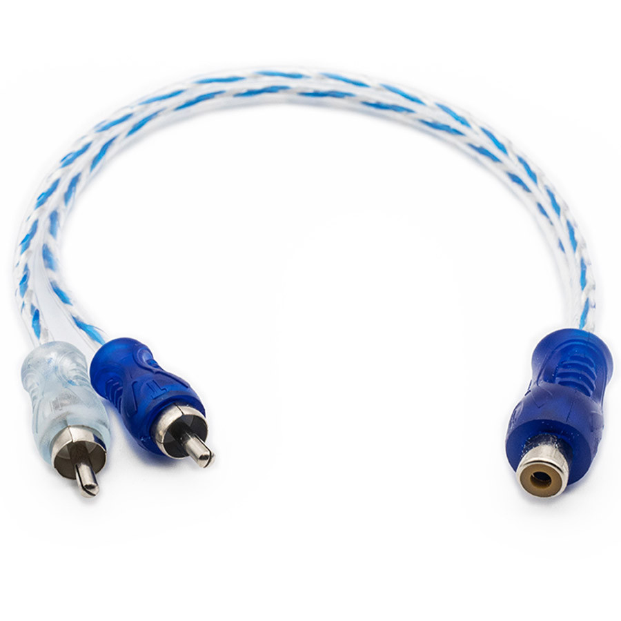 2 Cabo Y RCA Blindado 1 Femea 2 Macho Injetado Azul 4mm
