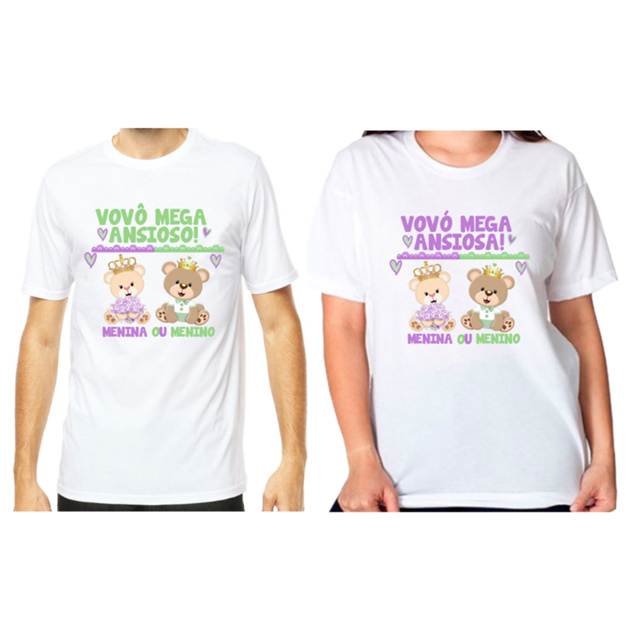 2 camisetas, blusas personalizadas vovô e vovó mega ansiosos verde e lilás chá revelação 1212