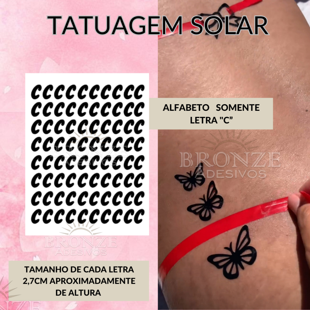 Contém duas cartelas de tatuagem solar de letras O Valor corresponde à duas cartelas de tatuagem solar. Cada número representa uma cartela. Bronze Adesivos Não trocamos os adesivos das cartelas. tamanho de cada adesivo depende do modelo, porém variam de 2 a 3,5cm mais ou menos. O Valor corresponde ao modelo da foto. Duvidas só chamar no chat.
