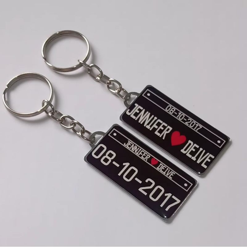 2 Chaveiros Personalizados Namorados,Casal,Placa - Preta Antiga Frente e Verso