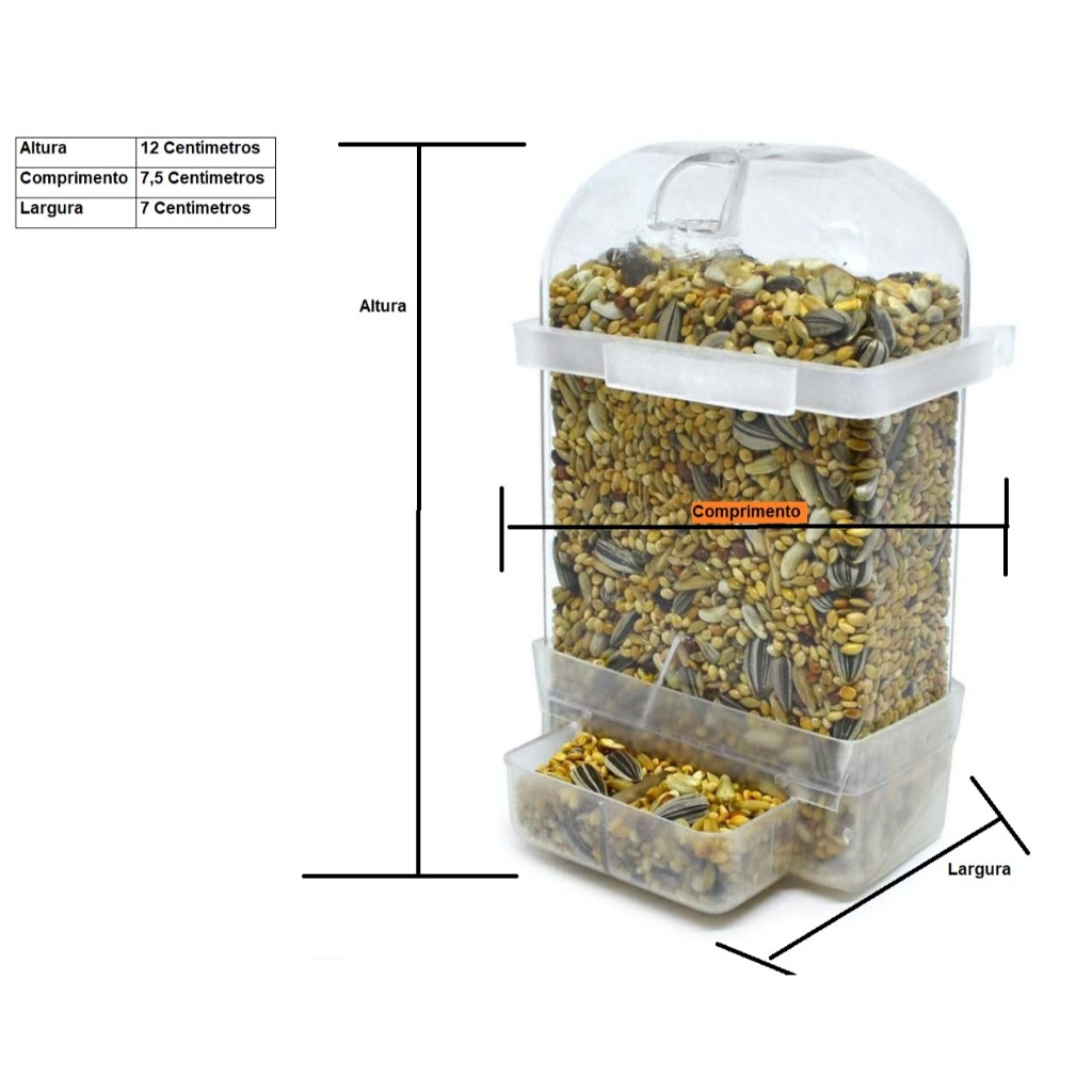 Seja Bem Vindo O comedouro K-13 Kotori é um acessório projetado especialmente para atrair aves a jardins, quintais e outras áreas externas. Com um design prático e funcional, ele facilita a alimentação segura e acessível para diversas espécies de pássaros. Principais características do comedouro K-13 Kotori: 1. Material durável: Feito com materiais resistentes às condições climáticas, garantindo que o comedouro possa permanecer ao ar livre sem comprometer sua qualidade e estrutura. 2. Capacidade de armazenamento: Ele comporta uma quantidade generosa de sementes ou ração, reduzindo a necessidade de reposição frequente. 3. Design atrativo: O visual do K-13 Kotori foi desenvolvido para se harmonizar com o ambiente natural e atrair os pássaros, incentivando-os a visitar o local com frequência. 4. Fácil instalação e limpeza: O comedouro é simples de montar e desmontar, o que facilita sua limpeza e reabastecimento, contribuindo para a higiene e saúde das aves. 5. Proteção para alimentos: Equipado com um sistema de proteção que impede que a comida fique exposta à chuva ou a outros animais indesejados, preservando a qualidade do alimento. Esse modelo é ideal para observadores de aves e para quem deseja atrair pássaros ao ambiente, proporcionando um local seguro e acessível para alimentação, ao mesmo tempo em que contribui para a preservação da fauna local. Altura: 12,4cm Largura: 7,4cm Profundidade: 6,7cm Capacidade: 220ml Medidas do cocho: Largura 5,2cm x Profundidade 2cm x Altura 1,8cm Observação: os comedouros Kotori possuem um "triângulo" na parte plástica próxima à saída das sementes. Esse triângulo é feito em um plástico mais fino do que o resto do corpo para que seja fácil cortá-lo, se necessário, a fim de ajustar a vazão das sementes. O comedouro K-13 Kotori é um acessório projetado especialmente para atrair aves a jardins, quintais e outras áreas externas. Com um design prático e funcional, ele facilita a alimentação segura e acessível para diversas espécies de pássaros.