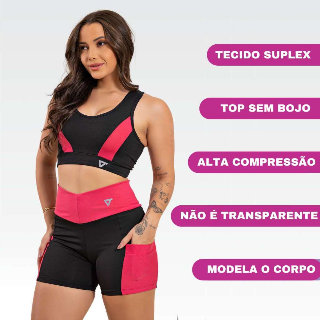 2 Conjunto Feminino Top E Short De Academia Fitness com Bolso